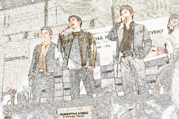 | 17時過ぎ、もうそろそろ開始時間が迫って、バックが用意されるが・・・これは SAMANTHA KINGZ じゃないよね。 | |