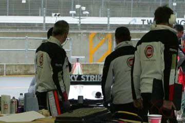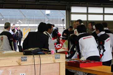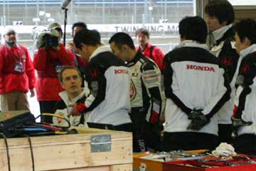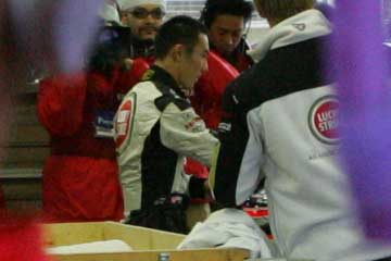 | 準備が進むピットに現れた佐藤琢磨。 | |