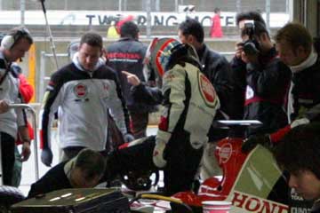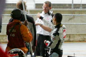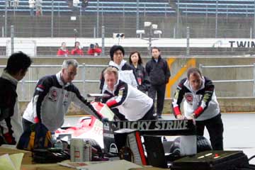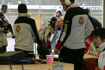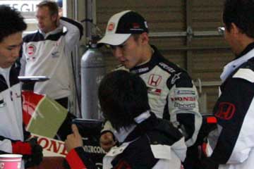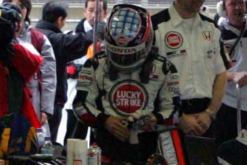 | 走行を終了してピットに戻った佐藤琢磨。 | |