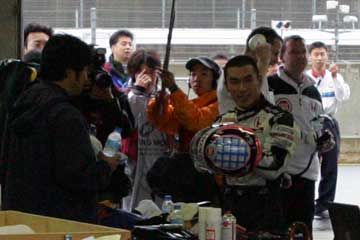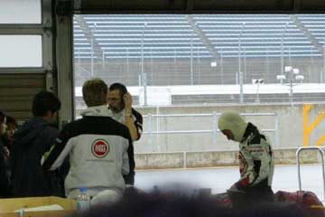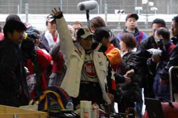 | スタッフと走行に付いて話し合う。 | 最後に再びファンに挨拶。 |