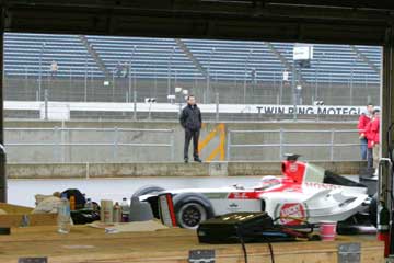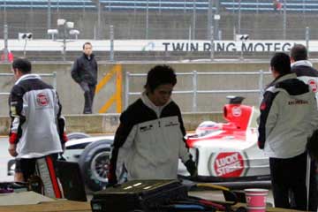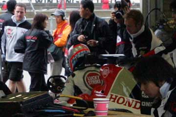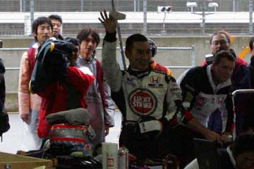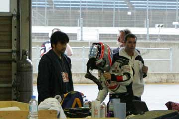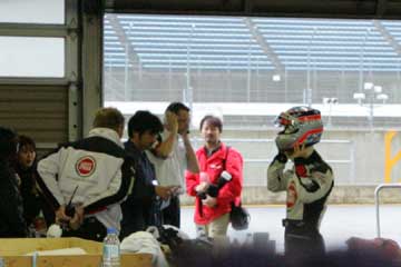 テスト走行が終了し戻った佐藤琢磨、午後からの本番が楽しみ♪。 |