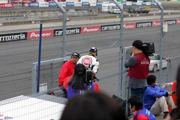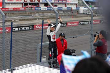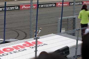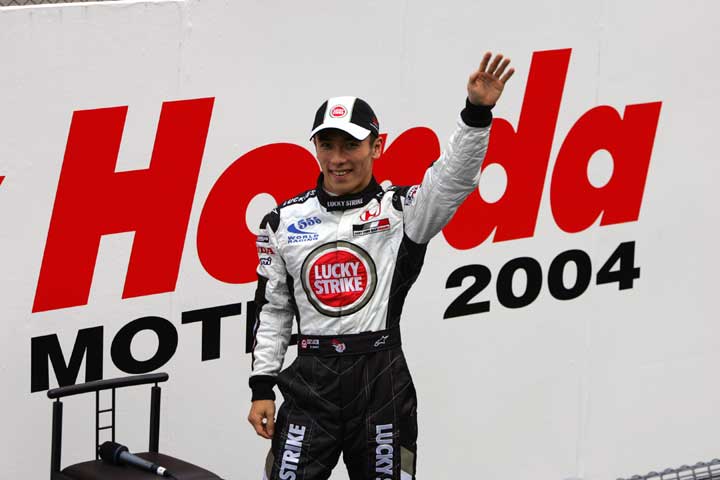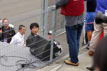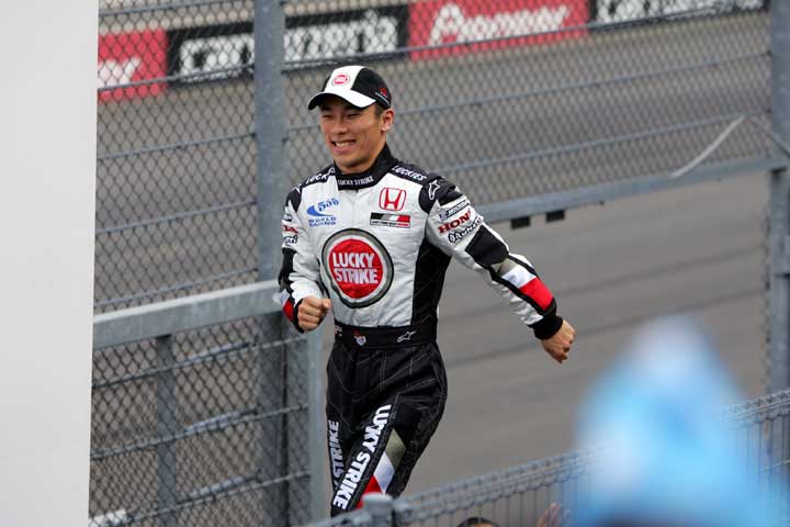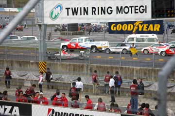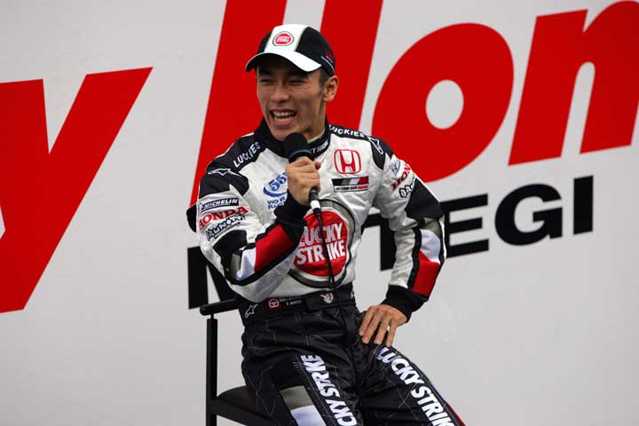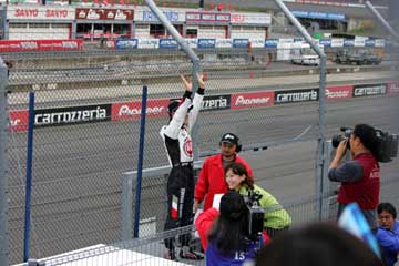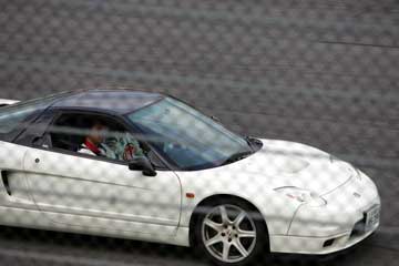| 無事?ドーナッツを終え、ピットに戻った佐藤琢磨はNSXに乗り換えて、再び出撃。 |
