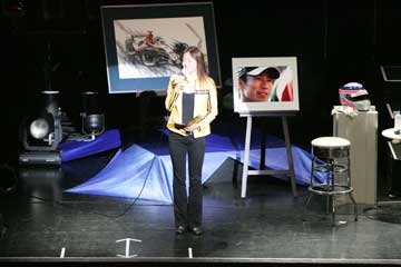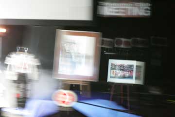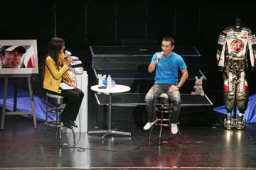 | ビデオの上映が終わり会場が明るくなると司会が現れる、いよいよ琢磨さんの登場か!。 | |