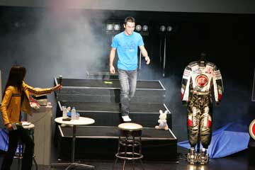 普通に司会者の反対側から登場と思っていたら予想外の展開に場内騒然!!、琢磨さんは何処??。 |