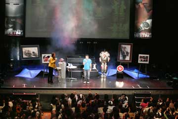 | 余りに凝った演出での登場に、場内は暫し唖然、会場の人々からは異様などよめきが・・・。 (^^; | |