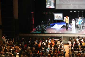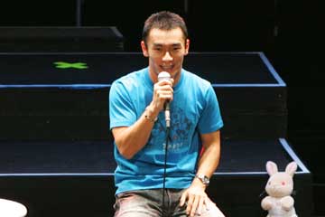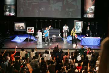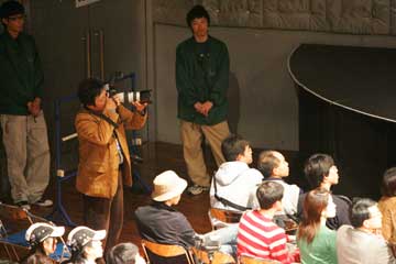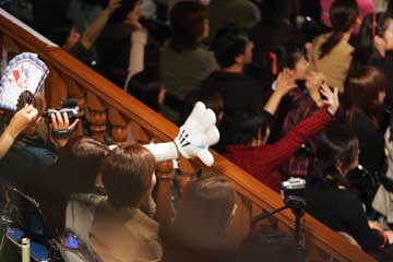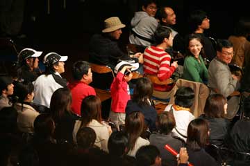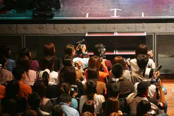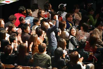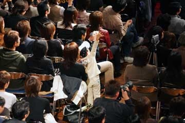 | 私を当て〜〜て!!、質問の権利をめぐってファンは必死になって手を上げる。 | |