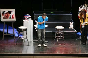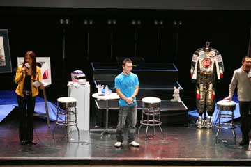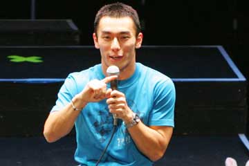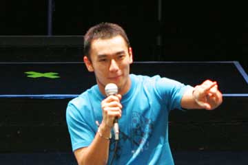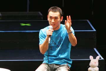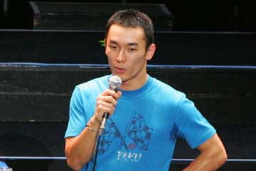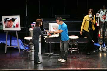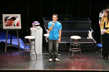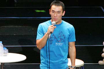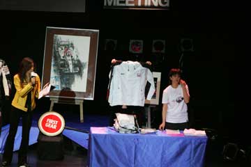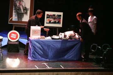 プレゼント大会の最後は琢磨さん使用済みのレア・グッズの数々が登場。 抽選では無くジャンケン大会で当選者が決まる、会場内は更にヒート・アップ・・・でも当らない。 (T_T) プレゼント大会が終了して、イベントもこれにて終了?、最後に琢磨さんの挨拶が行われる。 |