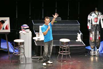 トークも一段落し、続いては質問コーナーが開催される。 お子様の微笑ましい質問から、女性ファンの???な質問、さらにマニアックな質問まで盛り沢山。 琢磨さんも笑顔で丁寧に答えて、和やかの雰囲気の中進行する。 |