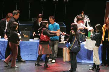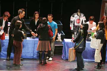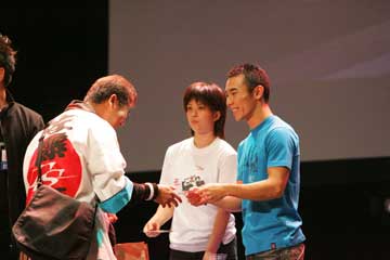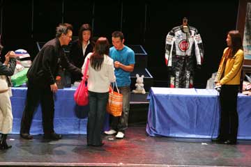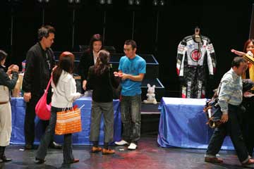 | イベントは無事終了。 でもここで琢磨さんから嬉しいお知らせ!、参加者全員との握手会の開催だ!!。 先に行われた大阪でのイベントでも行われたが、東京での開催は未定との事だった為皆喜ぶ!!!。 でも、1000人との握手は大変、2階席までは当分お預け・・・、琢磨さんご苦労様です。 |