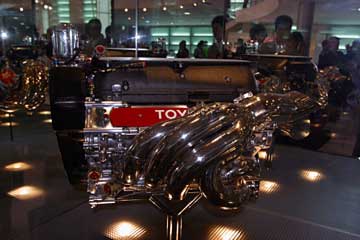 | マシンの両脇にはドライバーの装備とエンジンを展示している。 | |