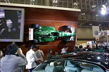 | ジャガーは壁面に展示、各社展示方法を色々考えている様だ。 |