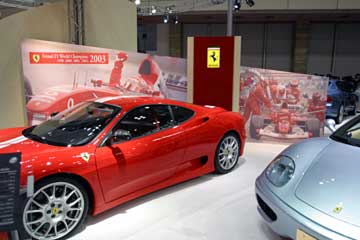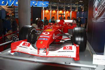 昨年型のF2002、ブリヂストンのイベントではお馴染みのマシンかな。 本家、フェラーリのブースやフィアットのブースにはF1マシンの展示は無し、どうして・・・?。 必ず有ると思って探し回ったのに!。 |