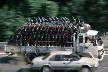9月頃 いよいよ鈴鹿行きが迫るがここで一思案、昨年から撮り始めた写真だが今年は如何する?。 まさか今年も『写ルンです』では・・・、そこで急遽カメラの購入を検討し始める事に。 メーカーはF1のスポンサーをしているので当然Canonに決定、しかし機種はどれが良いのか判らない。 カメラ好きの同僚何人かに相談したら『EOS-1にしたら・・・』って、一番高価な機種を薦められる・・・、 Canonにはそれ位しか良いカメラは無いとの事、やっぱりNikon党達に聞くんじゃなかった・・・。 (^^; 結局EOS 10を購入、チョットEOS-1にも惹かれたけど素人が持つには贅沢すぎ。 [ 今はEOS-1系を使っているが腕前はやっぱり素人、メカ好きなもんでコレクションです・・・。 (^^; ] これでカメラは用意出来たけど、実際に上手くF1の写真が撮れるのかが心配、そこで近くの高速が見える場所に行き、流し撮りの練習を行う。 |