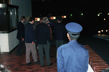 こんなので役に立つのか不安だが、気休めにはなるかな?。 10月18日 木曜日 で、いよいよ当日。 朝から荷造りを行い午後3時過ぎに出発、9時頃にサーキットに到着し無事に駐車場を確保する。 一息入れたところでホテル入口に行きF1関係者の姿を探す。 (注: この頃、サーキットホテル入口は正面(現レストラン街)に在りました。) |