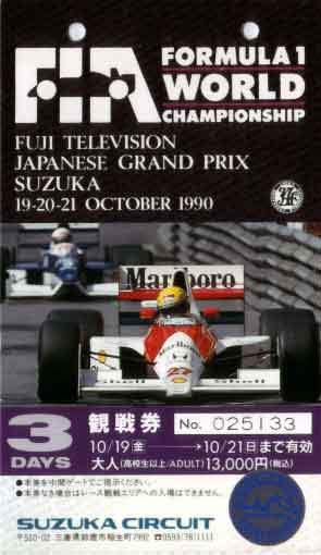 6月頃 1988年、1989年と事前計画無しで鈴鹿にF1観戦を行い、 すっかり現地の雰囲気に感動!。 今年は準備万全で!!・・・と意気込むが!!!。 いきなり意気消沈、チケットが手に入らない。 (T_T) フジTVの宣伝の為かF1ブームが訪れ、チケットが全然手に入らない状況なのだ、困ったどうしよう?。 始めに考えたのはHONDAのセールスに頼む事。 しかし、以前とは異なり全く入手出来ないとの返事だ。 半ばあきらめていたが・・・。 思いがけずチケットを入手する事が出来る。 \(^o^)/ チケットが無いと聞いた会社の先輩が、親戚の方から余り券を譲って貰える様頼んでくれたのだ。 この頃、事業所の一部では既にF1馬鹿として『悪評』が知れ渡っていて、その為に幸運が訪れたのかな?。 (^^; |
