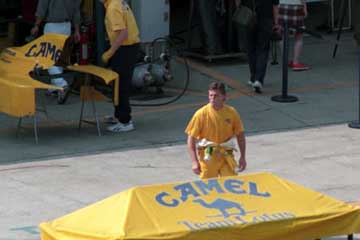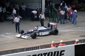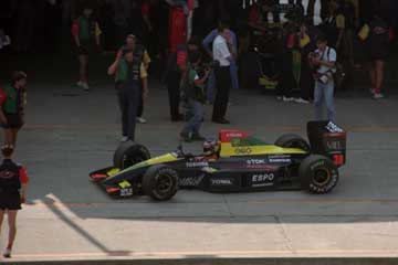 | タイム・アタックを終えピットに戻るアイルトン・セナ。 | P・PはNo27!。 |