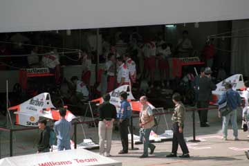 パドック・ウォークの時間になりパドック・クラブの人々でピット内が賑わう。 |