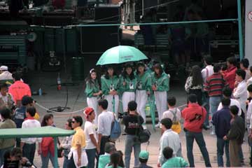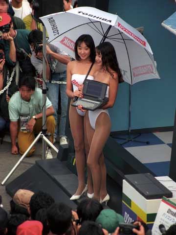 | 日本関連のチームには場違いなキャンギャルが。 (^^; | グランド・スタンド裏でも。 |
