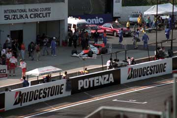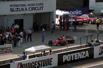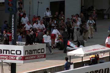 | アラン・プロストがマクラーレンの前を通りピットに戻る。 | 鈴木亜久里も好タイムをマーク。 |
