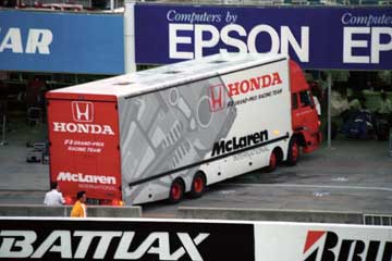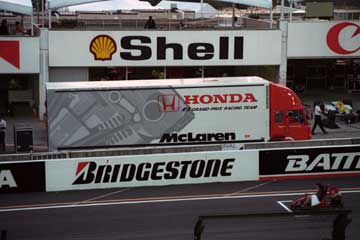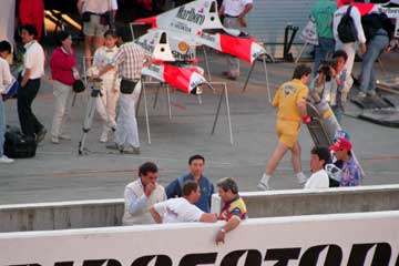 ピットの様子を観ているとマクラーレンのピットに動きが!、チャンピョンを決めたアイルトン・セナか?。 |