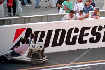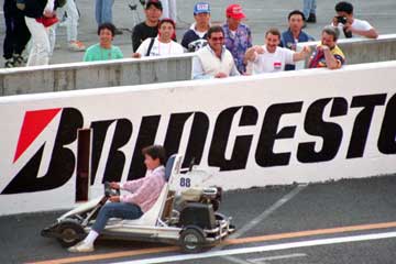 | マンセルに見とれて壁に激突したゴーカート。 | マンセルはそれを見て大喜び。 |