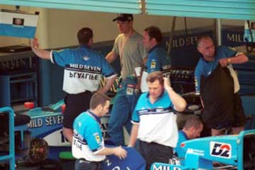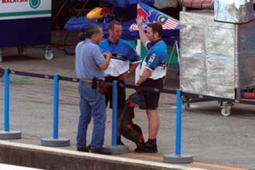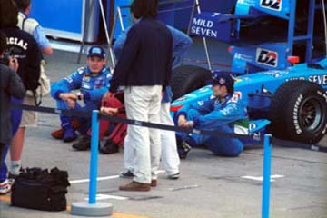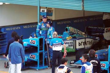 | ピットに現れた、アレクサンダー・ブルツとジャンカルロ・フィジケラ。 | スッタフに指示を受ける二人。 |