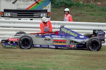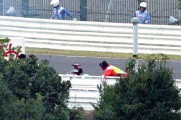 | マルク・ジェネ、1コーナー先でストップ。 | すかさずマシンの撤去が始まる。 |