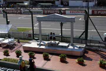 グランド・スタンドに到着、未だのどかなピット風景を楽しむ。 |