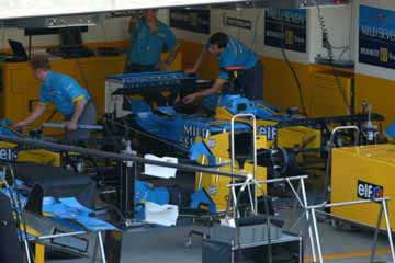 | ウイリアムズ、工具箱のカバーで控えめにマシンをガードしている。 |