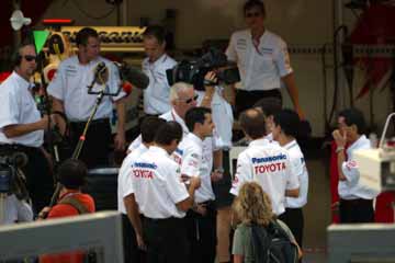 表彰台ではリハーサルが行われてる頃、S1スタンド正面に位置するTOYOTAのピット内では首脳会議が行われていた。 HONDAファンですが、何故かチーム・マネージャーのアンジュ・パスカーリを応援してます。(^^;;; |