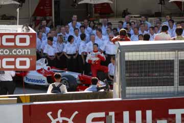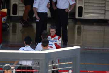 TOYOTAのピット前に人が集まり始める、どうやら記念撮影を行うみたいだ。 私もその様子を見学する為に、再び場所を移動する。 |