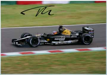 今日はそろそろ観戦を終了して、車に戻り夕食(宴会)を始める事にする。 帰り際グランド・スタンドを出て歩き始めると、前方より思わぬ人を発見。 何と先程のアロンソが戻って来たのだ。 思わずカメラを友人に預け(放り投げ?)、写真を用意してサインを貰う。 |