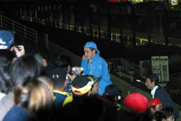 | 途中にはF1関係者が横を通り抜ける、今年何度目かの遭遇フェルナンド・アロンソです。 | HONDAスタッフからは『明日のエンジン音を聞いて下さい、今日より一段と良い音がします!』と心強い言葉が飛び出る。 |