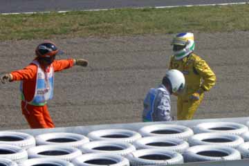 | ・・・と思ったら、続いてジャンカルロ・フィジケラもコース・アウト!。 | |