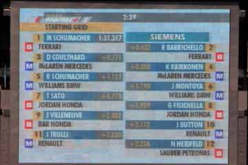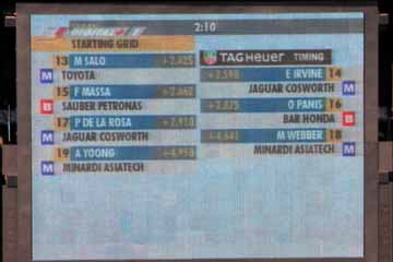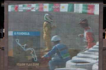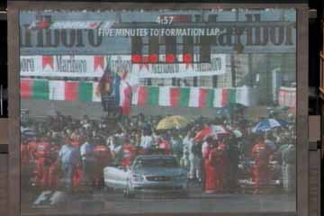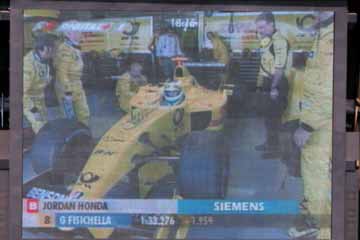 フィジケラのジョーダンがストップ、急いでピットに戻りスペア・カーで出走。 HONDAのエンジンは、良い音をしており馬力は出ている様だが耐久性に問題有りか?心配だ。 それから、マクニッシュは結局レースには出走しない事となった様だ、今回が最後だけに残念。 |