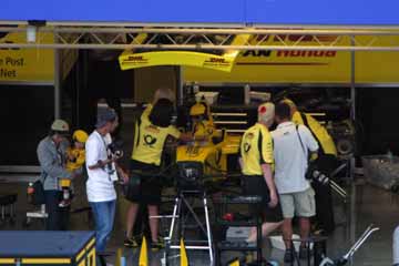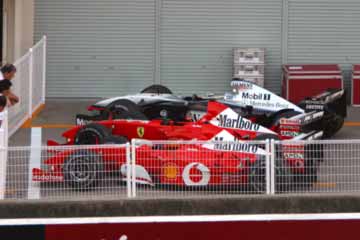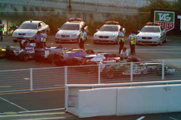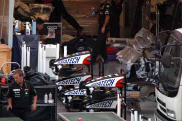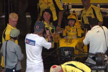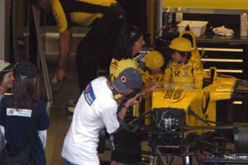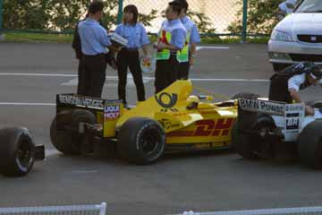 ミナルディのパフォーマンスにグランド・スタンドに残った観客達も大喝采。 こんな事してる暇があったら本業を頑張れ・・・てな事は無し、愛すべき存在です来年も宜しく!。 ・・・でも、アジアンテックの主催?なら・・・来年は無いかな??、他チームでも良いので期待してます。 |