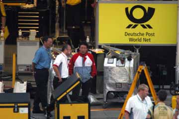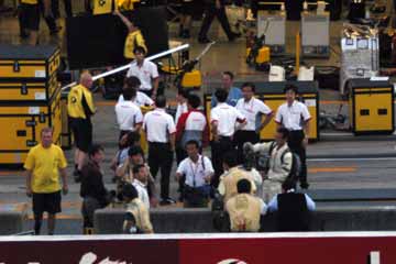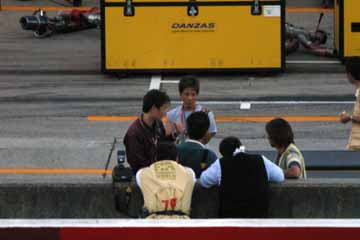 | ミナルディの演奏に注目している間にジョーダンのピットで動きが在る、注目の佐藤琢磨の登場か?。 |