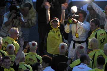 | 大歓声に暫らく応えた後ピットに撤収。 | |