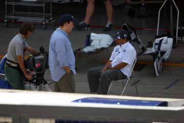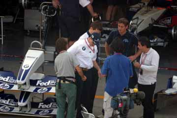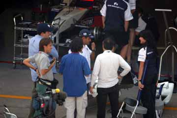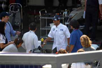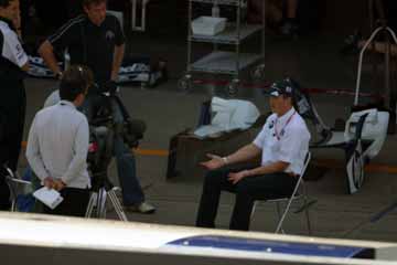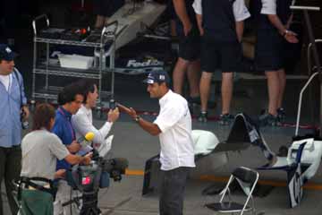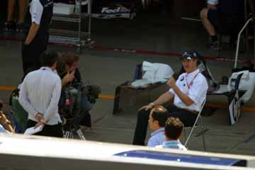 | 次はウイリアムズのピット前に陣取る、程なくファン-パブロ・モントーヤが現れる。 どうやら何処かのプレスのインタビューが始まるらしい、今度はこの様子を暫らく注目する事にする。 |