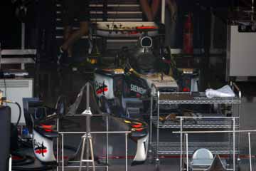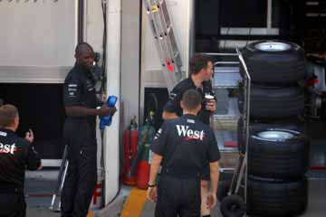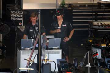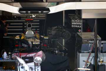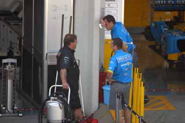 | フェラーリに比べ落ち着いた雰囲気のピットにモントーヤが登場する。 | |