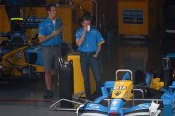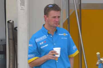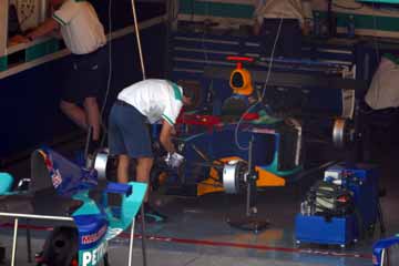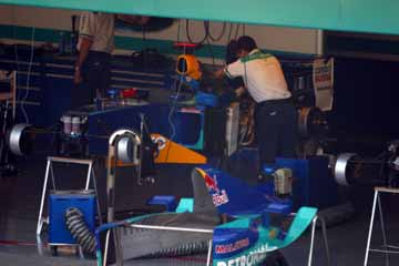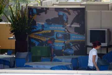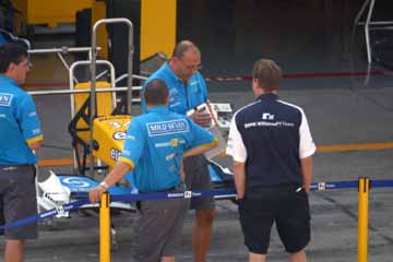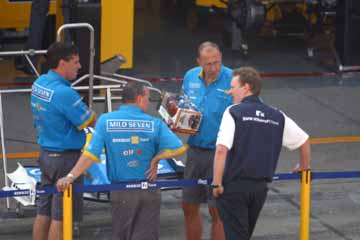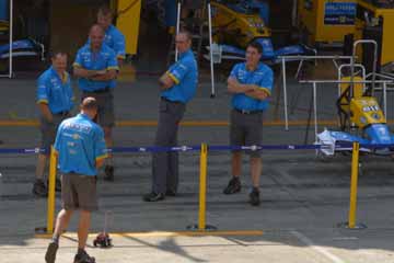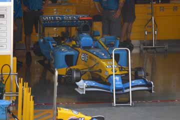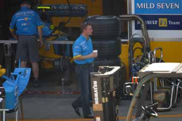 | 突如ルノーのピットを暴走するピックアップ・トラック!、その正体は何?。 |