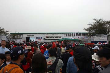 | 入場ゲート付近でのモントーヤのファン達。 | 決勝日はやはり混んでます。 |