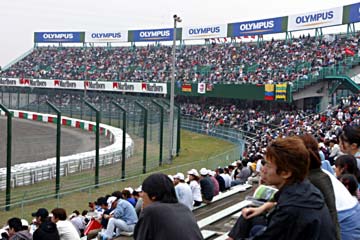| いよいよ決勝の時、今にも雨が降り出しそうな気配だが今は未だドライの路面だ。 シグナルはレッド・ランプがカウントを刻みオール・レッド・・・緊張の長〜い一瞬の後消える、スタート!。 ポール・ポジションのバリチェロとモントーヤは供に好スタート、しかしバリチェロは進路をインに向けて、モントーヤに対してブロック・ラインを取る。 モントーヤは更にインを狙うが、抜くには至らず両者譲らぬまま1コーナーに進入。 危ない!、しかし両者はお互いに最低限のスペースを残しコーナリング。 バリチェロが1コーナーを制し・・・?!、いや!!、2人のバトルでスピードが落ちたのを見たダマッタが大外から2台を抜き去りトップで1コーナーを抜けている!!!。 空かさず追撃に向かうバリチェロと思われたが、相変わらずモントーヤを巧みなブロック・ラインで抑える事に専念している。 ダマッタは燃料タンクが軽いのか、脅威的ラップ・タイムでトップを独走、どんどん後続を引き離しに掛かる。 1周目が終わる時には、早くも5秒以上の間隔。 如何したバリチェロ?。 う〜ん・・・そうか!、バリチェロ&フェラーリにとってライバルはライコネンとウイリアムズ勢だけだ。 ダマッタにトップを独走させて優勝させれば、ドライバーズ・チャンピョンはミハエルに決定する。 コンストラクターズ・チャンピョンは、モントーヤを抑えていれば良い、フェラーリの戦略は完璧だ。 10周目と早いピット・ストップで燃料補給するダマッタ、トラブル発生か?長い給油時間で再スタート。 しかし、独走で築いた間隔は余裕十分、そのままトップでピット・アウトして行く。 その後はペースが落ち着く、相変わらずブロック・ラインを取りペースを抑えているバリチェロと同タイムでの走行だ。 どうやらフェラーリの戦略に気づいたTOYOTAは、3回ピットインから2回ピットインに作戦を変更した様だ。 これでトップを守り抜く作戦だろう。 あ〜〜あ、茂木に続き鈴鹿でもTOYOTAに優勝を持っていかれるのか〜〜〜。 HONDA勢はどうした・・・、そう思った瞬間にバトンはエンジン・ブロー、又も鈴鹿スペシャルにトラブル。 残るは佐藤琢磨のみ、頑張ってくれ〜〜〜。 でも、コーナリング時には微かに白煙が!、マズイ!、オイル系のトラブルか?。 あ〜〜〜〜、ダメだ〜〜〜〜〜。 (_ _) 。oO 今年の決勝日は朝が遅くて良い、二日酔い気味で二度寝しながら考えた、妄想でした!。 m(_ _)m HONDA頑張れ! 結局9時過ぎに起床し10時に出発、朝食は指定席で食べる事にする。 疲労が溜まっているのと混雑する為に、今年も500mmはお留守番に決定、機動力を最優先とする。 それでも重量オーバー気味、今年はPCを持って行く、ライブ・タイミングを見ながら決勝観戦だ!。 |