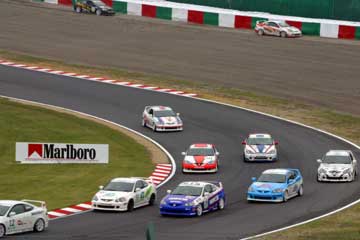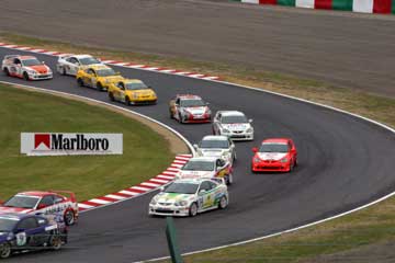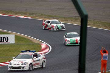 | 混戦のINTEGRAレース、1コーナーでコース・アウトするマシンも。 大回りしてS字入口から合流。 | |