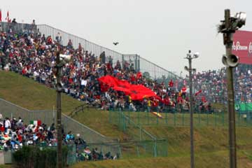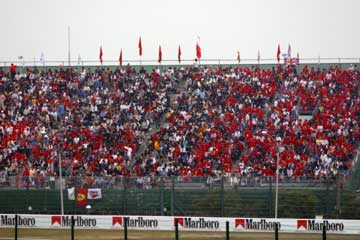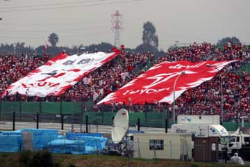| 放送席の在るEスタンドはフジTVの旗。 | これは純粋に個人的フェラーリ・ファンでしょう。 |