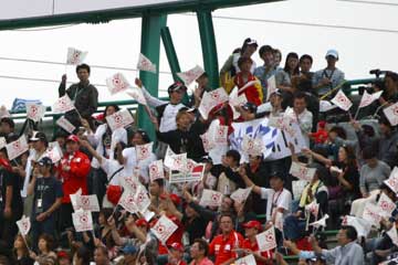 | TOYOTAの応援は今年も盛大。 | HONDAは・・・、フェラーリと区別がつかない・・・。 |