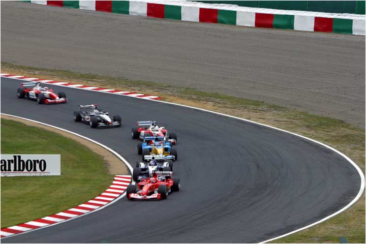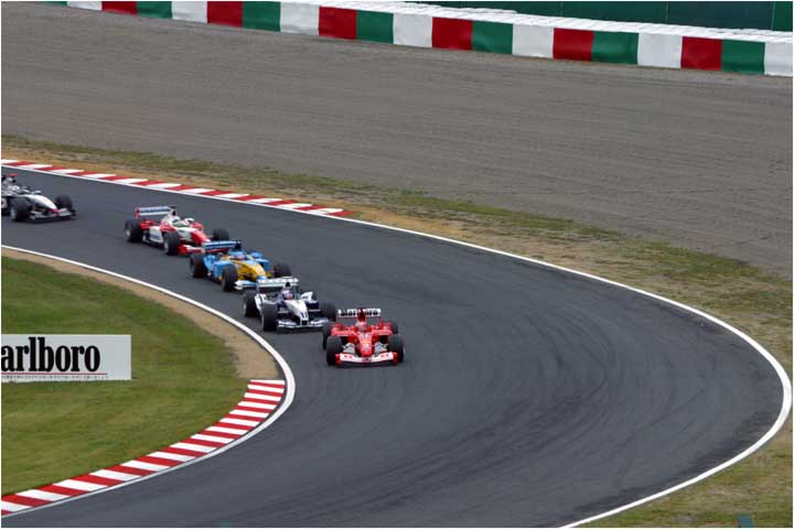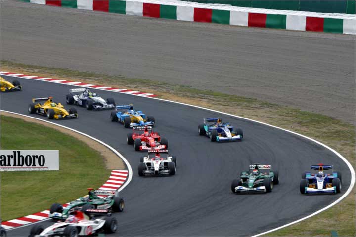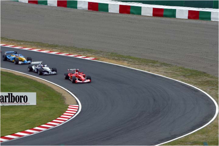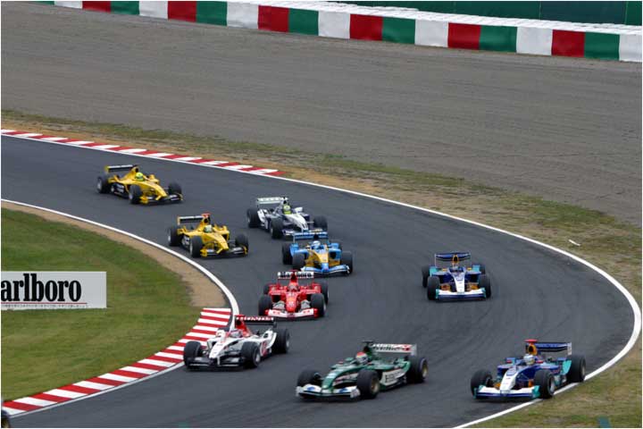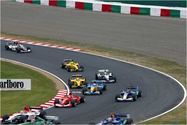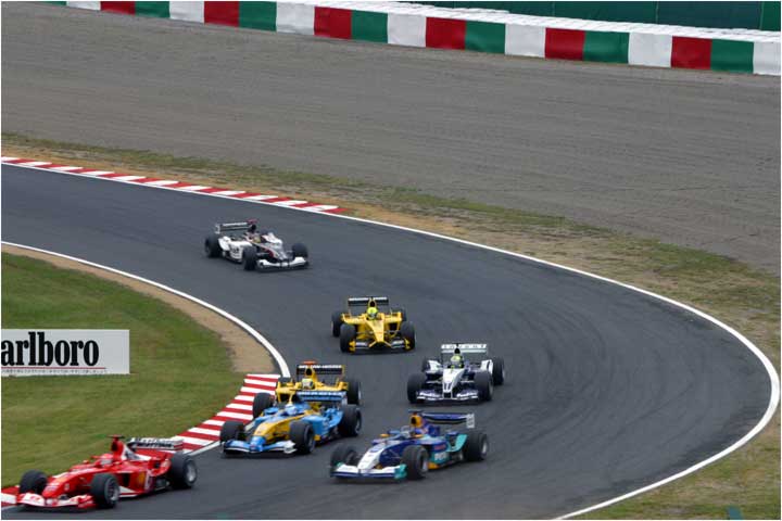 ポール・ポジションのバリチェロとモントーヤは供に好スタート、3番手にはTOYOTA勢を抜いてルノーのアロンソが付けている、ライコネンはパニスに続いて7番手。 注目の佐藤琢磨はザウバー勢を抜いて11番手辺り、ミハエルがその後に続く。 |
