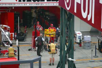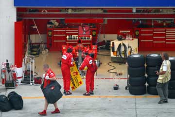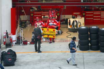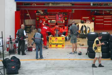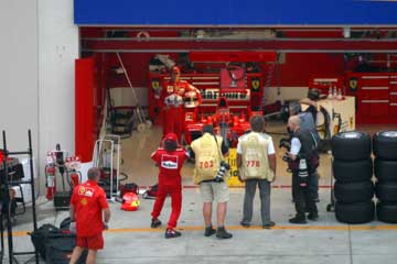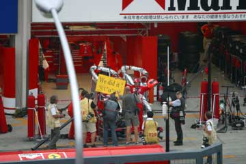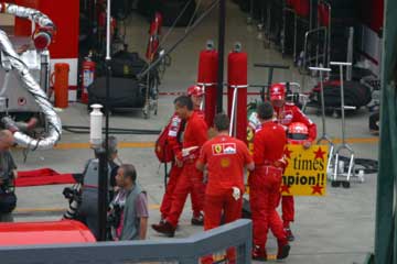 | フェラーリのピットにミハエル?登場。 | |