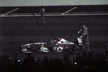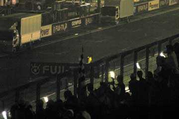遅くまで残ったスタンドのファンに手を振りながら奥に消えていく。 しかしそこはマクラーレンのピットでは・・・?。