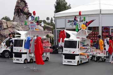 | イラスト展会場前はぷちオフ会か?。 | ブリヂストンのグッツは何故かメルセデスのトレーラーです。 |